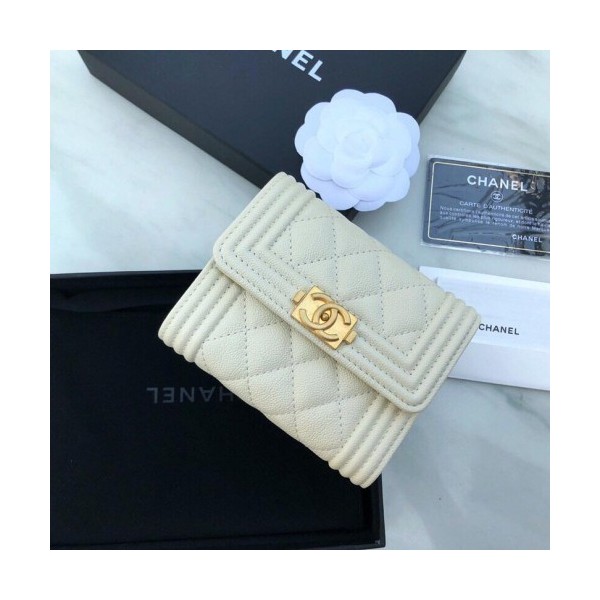 • CHANEL 샤넬 플랩 접이식 그레인드 카프스킨 반지갑