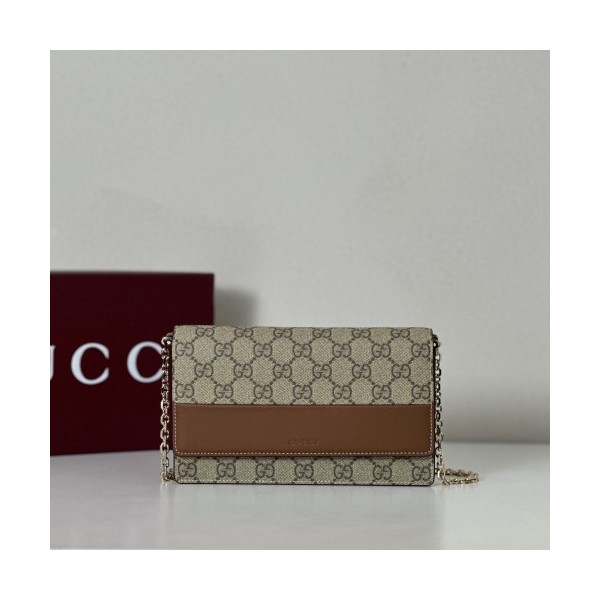 GUCCI 구찌 엠블럼 GG 수프림 캔버스 가죽 체인백