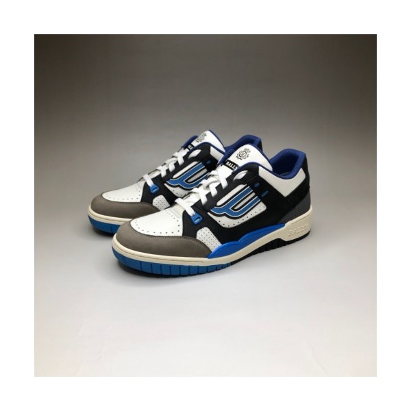 BALLY 발리 챔피온 화이트와 일렉트릭 블루 남성용 소가죽 스니커즈, MEN'S PLAIN CALF LEATHER TRAINER IN WHITE AND ELECTRIC BLUE > 신발